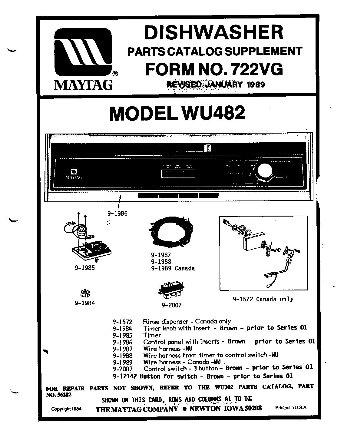 Maytag WU482 Timer RepairWhat is the timer/clock part number for the Maytag WU482 Dishwasher?![]() The WU482 Dishwasher uses timer part number 901985. Do you have a failed Maytag WU482 control panel? Click here: We can repair or replace your faulty Maytag WU482 timer. WU482 are also sometimes referred to using these Alternative Names/Model numbersWhirlpool WU482 Dishwasher WU482 Schematic and Wiring DiagramsRecent Service Requests